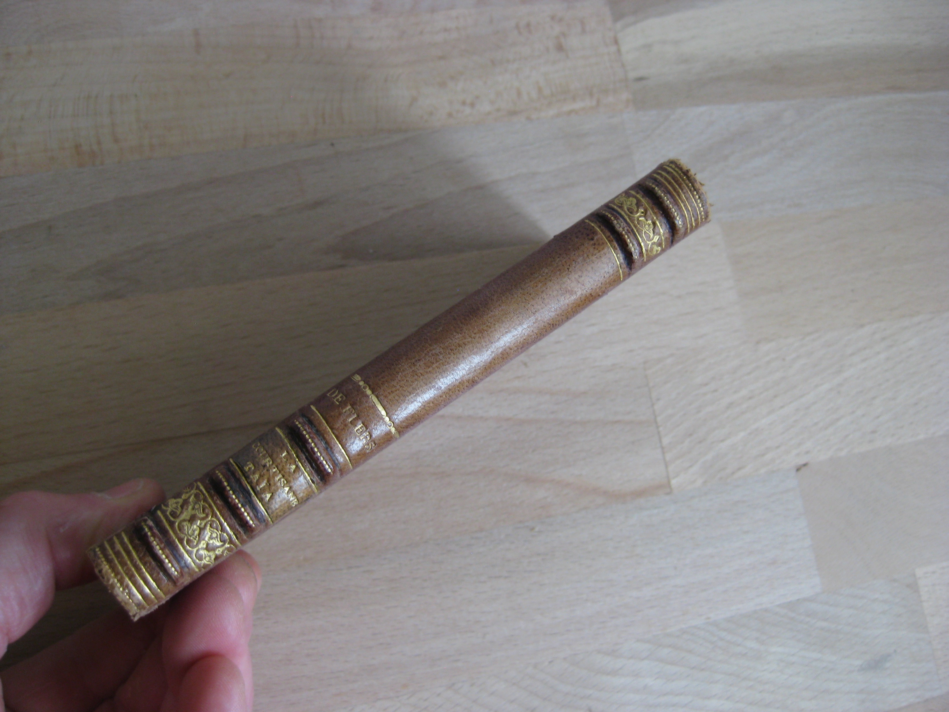 Pleine basane mauve à dos romantique orné de 5 faux-nerfs, de liserés, frises et pièce de titre olive, et de l’auteur estampé doré, tranche de tête dorée, couverture couleur conservée, signet rouge, 140 x 77, 114p. Hors table. 1896. Illustrations de L. Marold et A. Fabrès La couverture conservée est détachée ; pour le reste intérieur propre et intègre. Coins et champs frottés, coins avec épidermures. Plats mauves frotté mais bons, plat inférieur ridé. Dos insolé/décoloré. Bon exemplaire bien ferme.