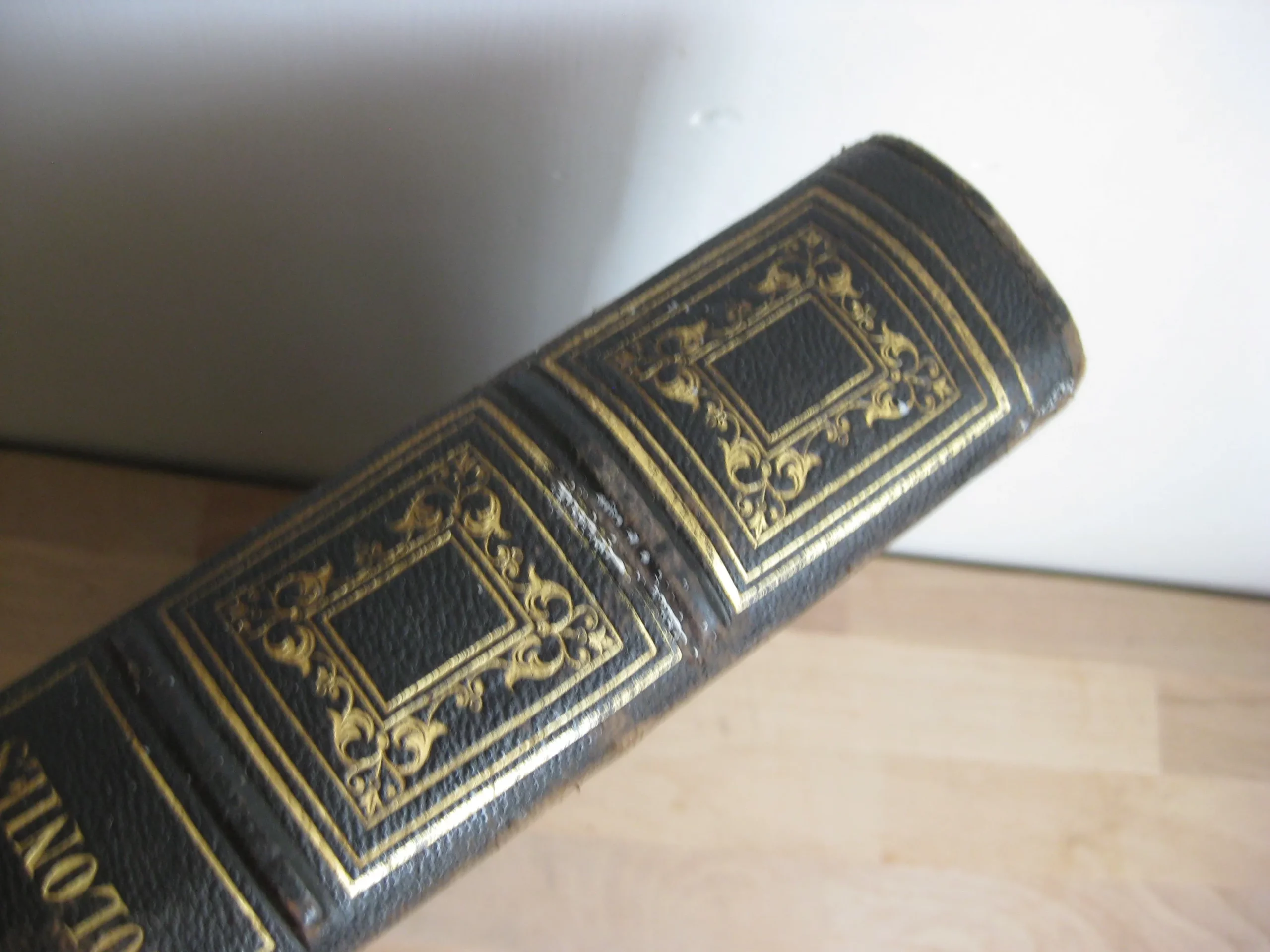 Tranches un peu grises, mais intérieur très frais, quelques rousseurs en page de titre. Un tampon de colportage 1874 au verso du titre. Reliure défraîchie : coins émoussés ; champs frottés avec deux petits manque en champs de gouttière inférieur ; champs de tête et de pied du plat supérieur frotté avec une déchirure et un manque en tête ; plats passés et frottés ; dos en bel état avec quelques frottements et épidermures et une tache blanc à un caisson.
