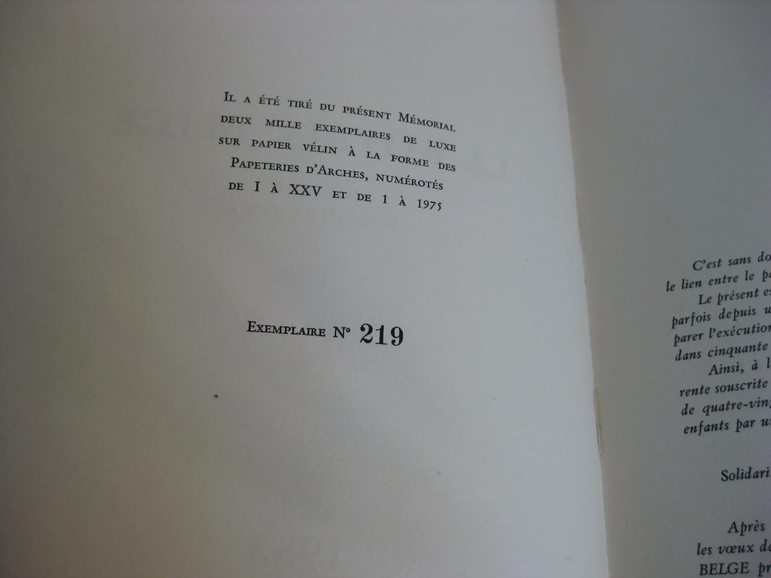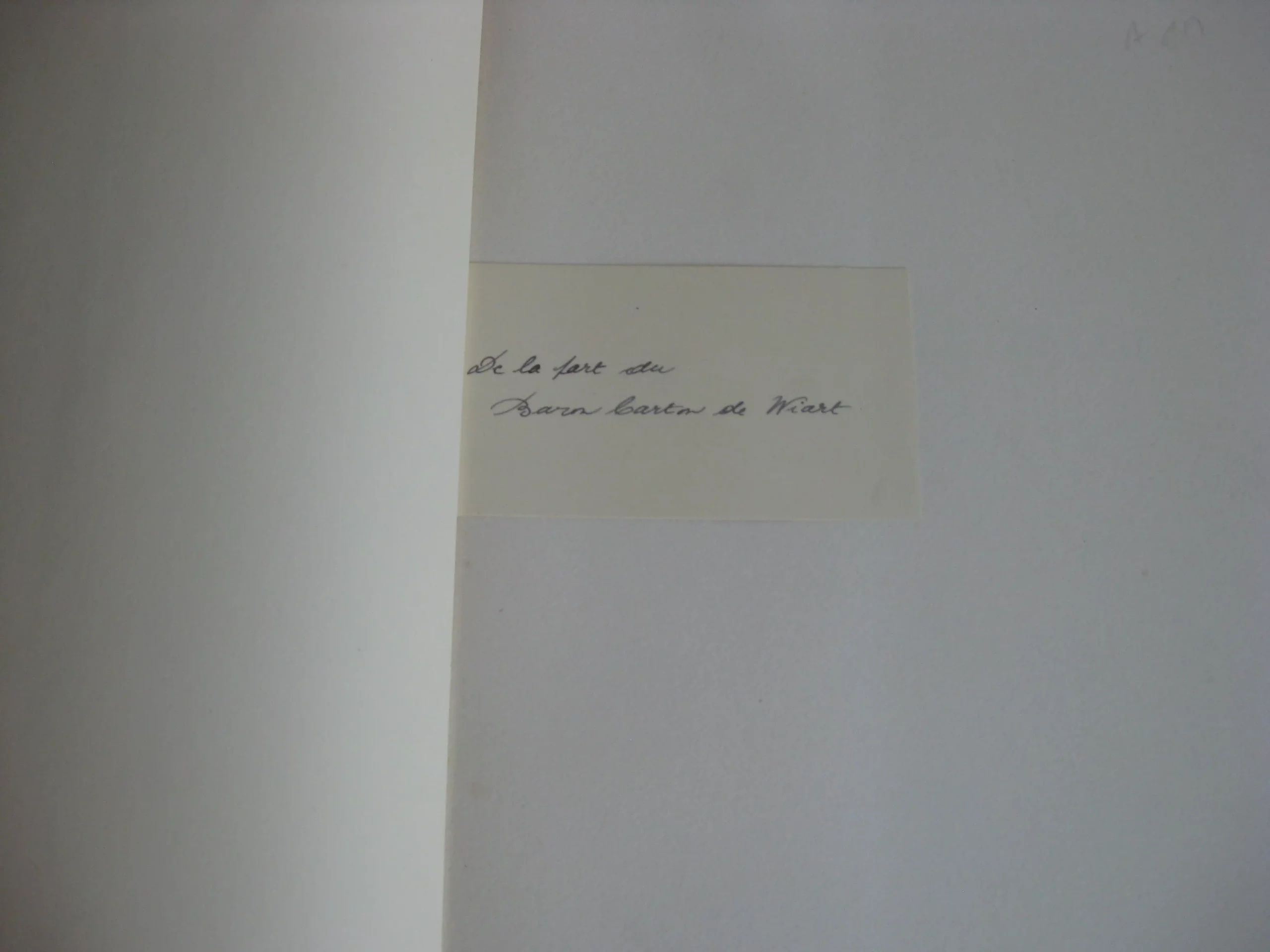 Broché, 255 x 233, 88p. 1952. exemplaire numéroté 219 / 2000. Exemplaire enrichi d’un autographe sur petit carton , l’ex-dono manuscrit du Baron Carton de Wiart [Edmond Carton de Wiart, proche de la famille royale belge, chef de cabinet de Léopold II]. Intérieur propre, non coupé. Quelques rousseurs légères ne première de couverture. Bel exemplaire, bien ferme. Emboîtage manquant.