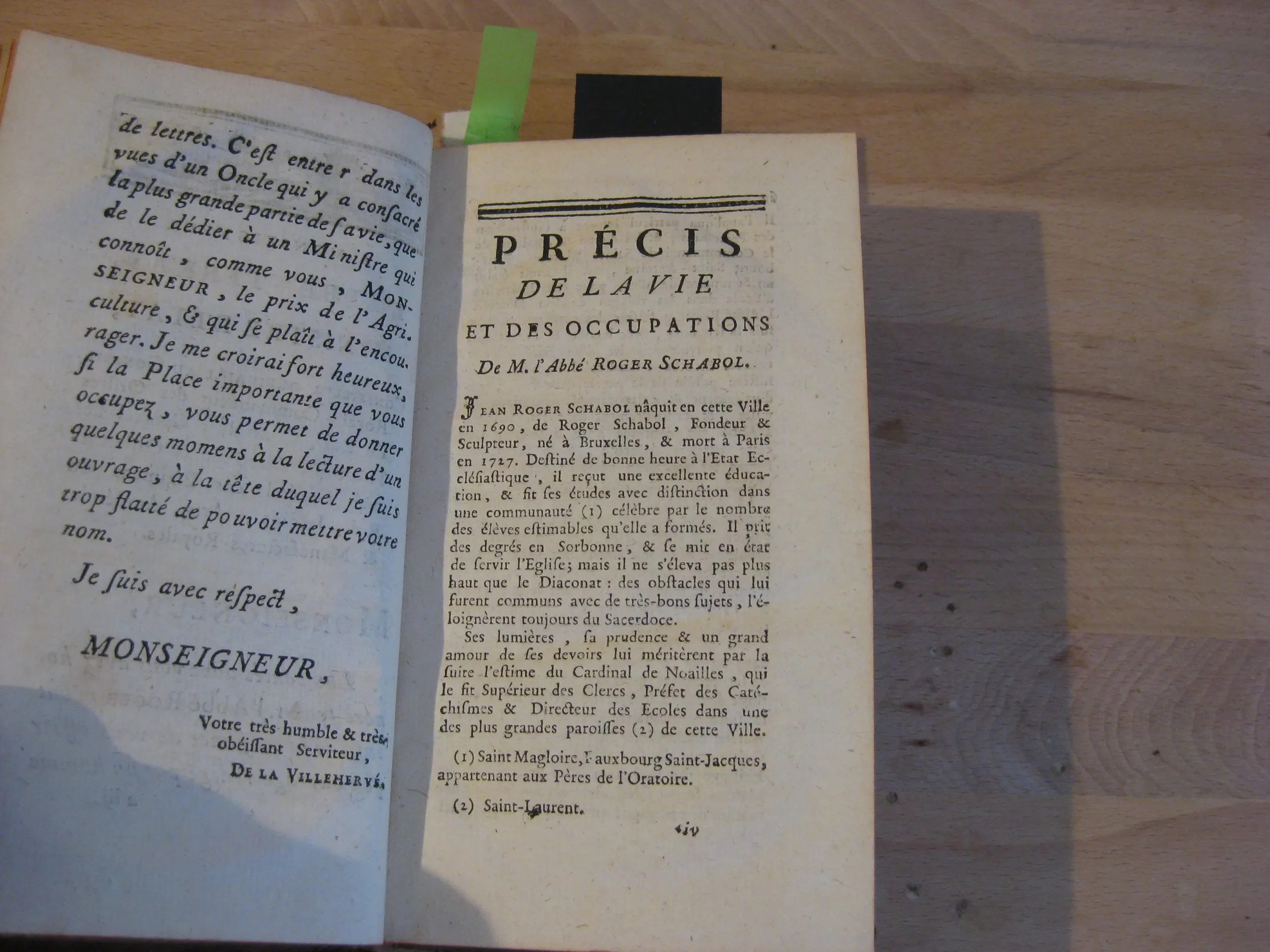 DescriptionAbbé Roger Schabol, ouvrage rédigé après sa mort sur ses mémoires par M. D***. Abbé Schabol / M. D*** [Dezallier d’Argenville] Chez Debure –