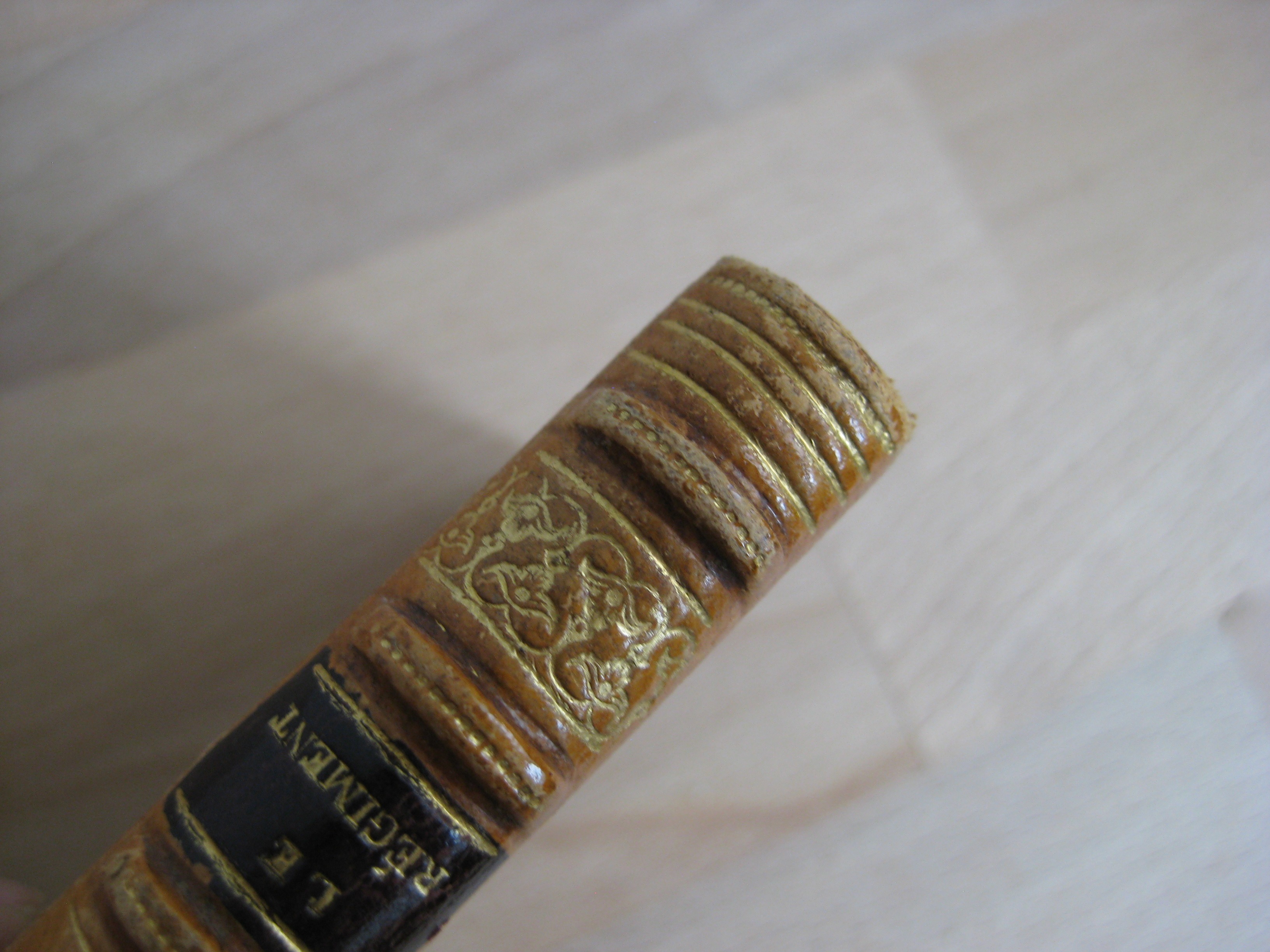 Librairie Borel – Pleine basane olive à dos romantique orné de 5 faux-nerfs, de liserés, frises et pièce de titre noire, et de l’auteur estampé doré, tranche de tête dorée, couverture couleur conservée, signet rouge, 140 x 77, 84p. 1898. Avec illustrations de Calbet (à pleine page et en marge, bleues et sanguines). Intérieur très bon, propre et intègre. Coins et champs frottés, coins avec épidermures. Plats olives insolés, décolorés en bordure et au dos. Frottements et épidermures aux nerfs, coiffe et queue, un manque en coiffe. Bon exemplaire bien ferme.