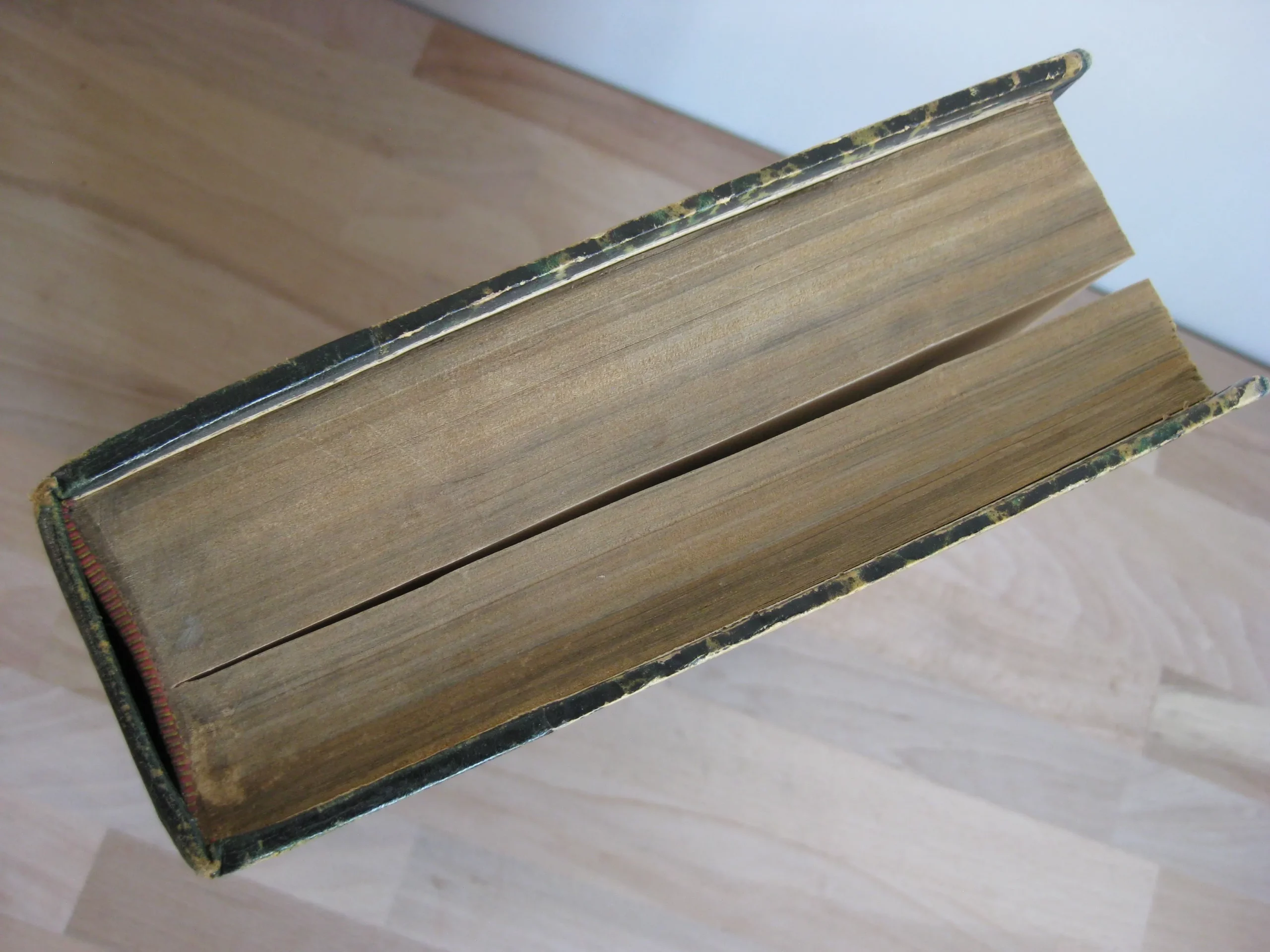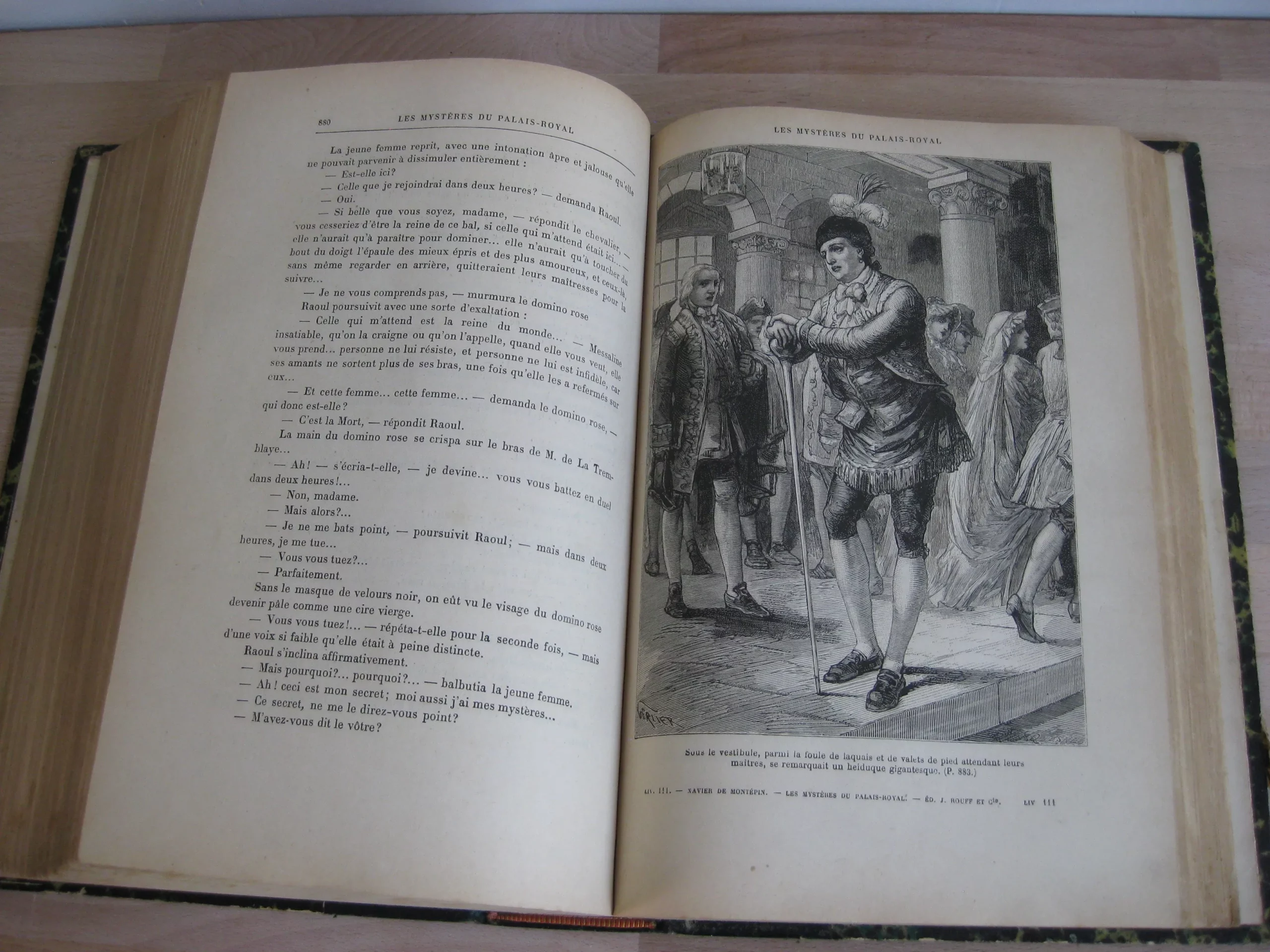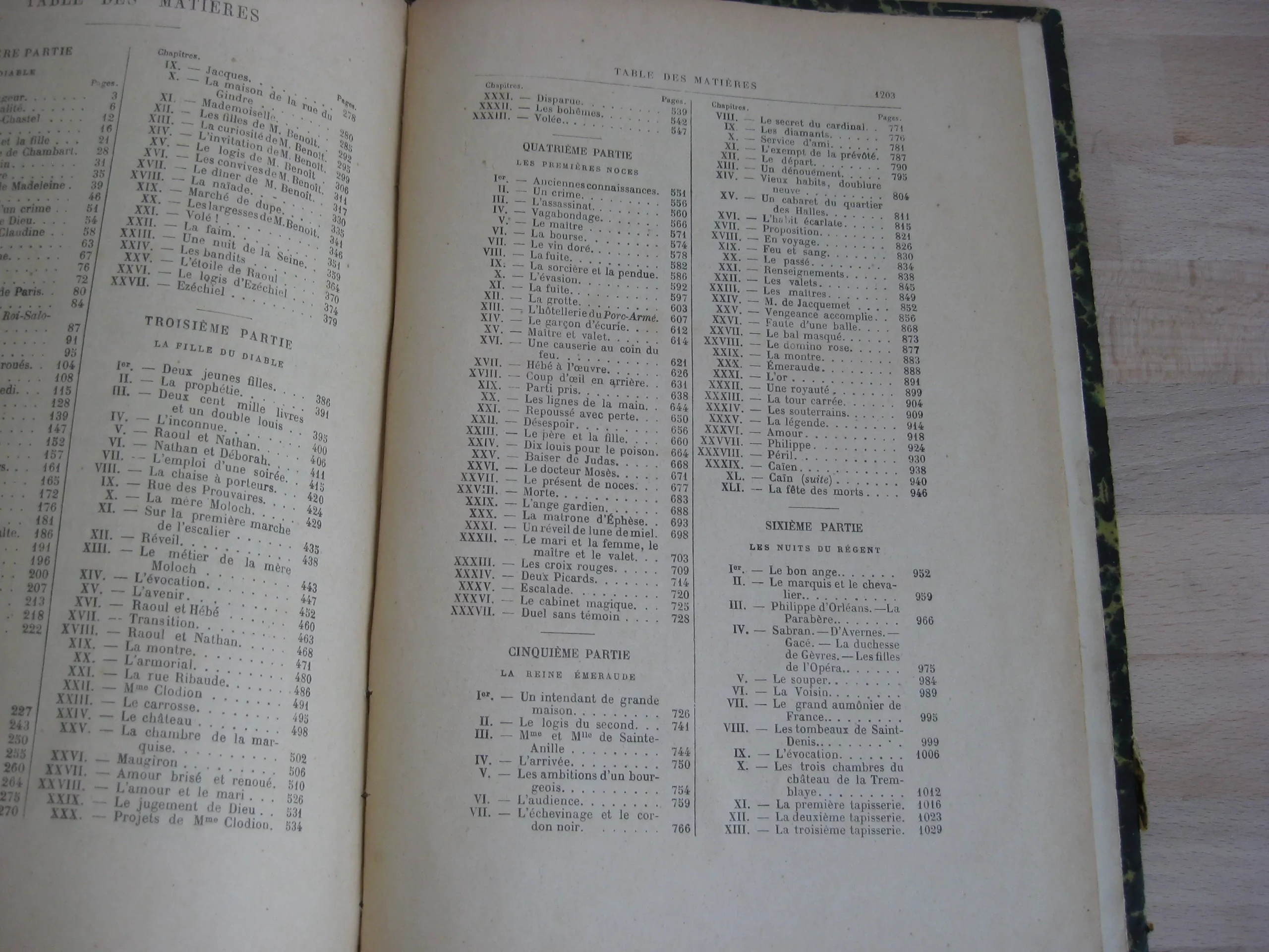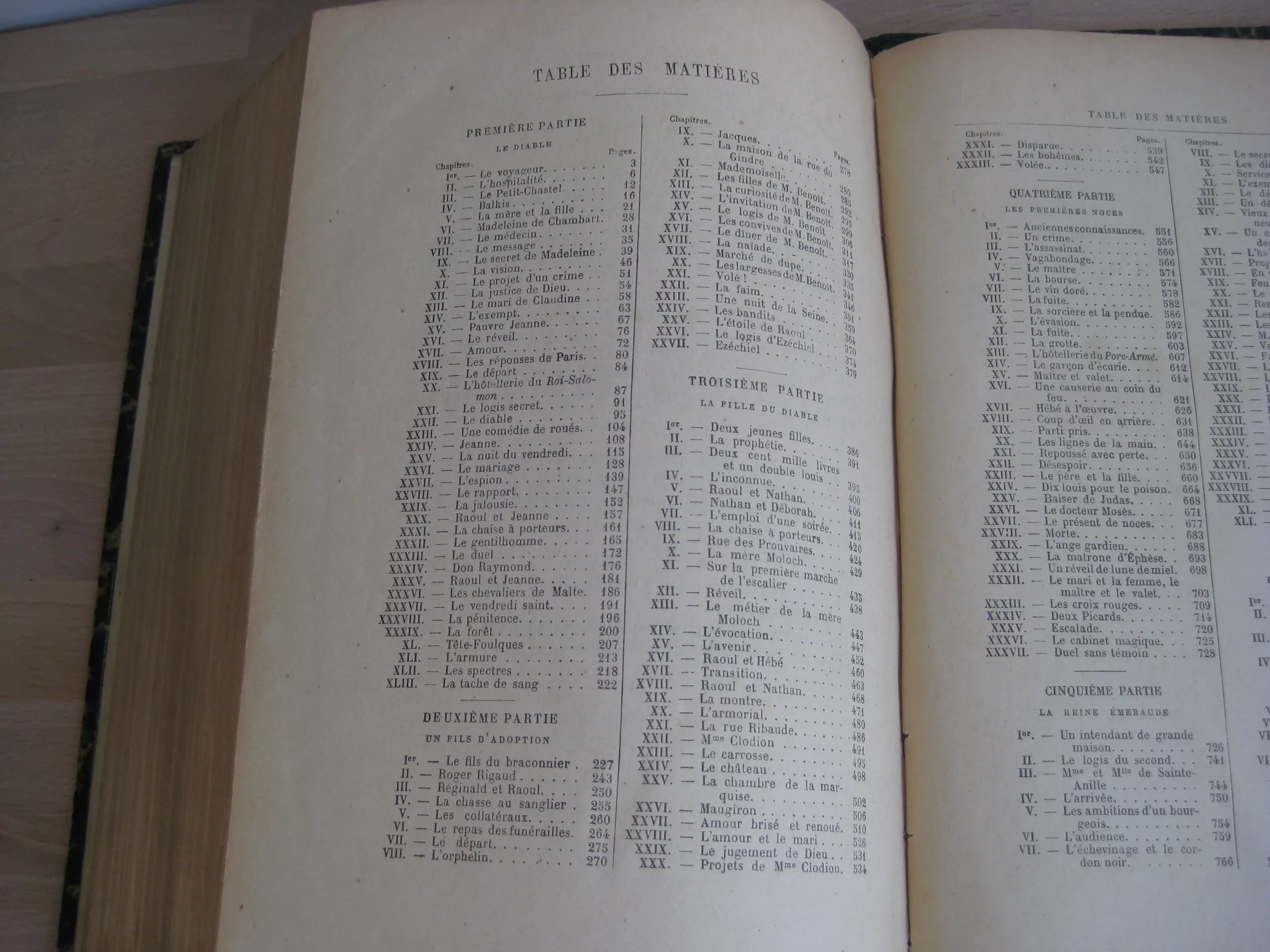 Demi-veau brun à dos long orné du titre et de doubles liserés, reliure étiquetée P. Thomassin, Lille. 289 x 200, 1204p. Sans date (ca 1865). Ex-libris tamponné au premier titre et au second. Second titre illustré pleine page par Geruer et Quesnel (qui signent les illustrations). Intérieur propre, rousseurs marginales, tranches avec rousseurs. Coins, et champs frottés mais bons. Reliure en bon état, avec épidermures en coiffe, queue, morts. Bel exemplaire bien ferme.