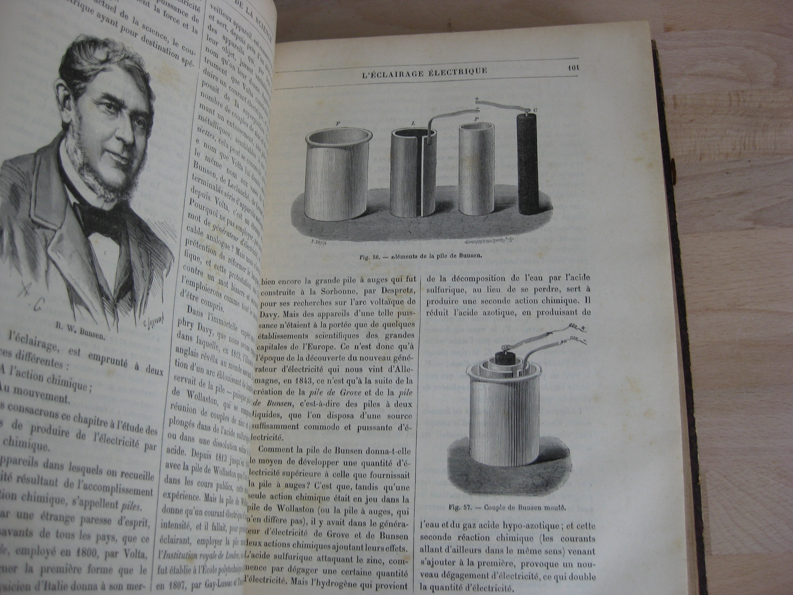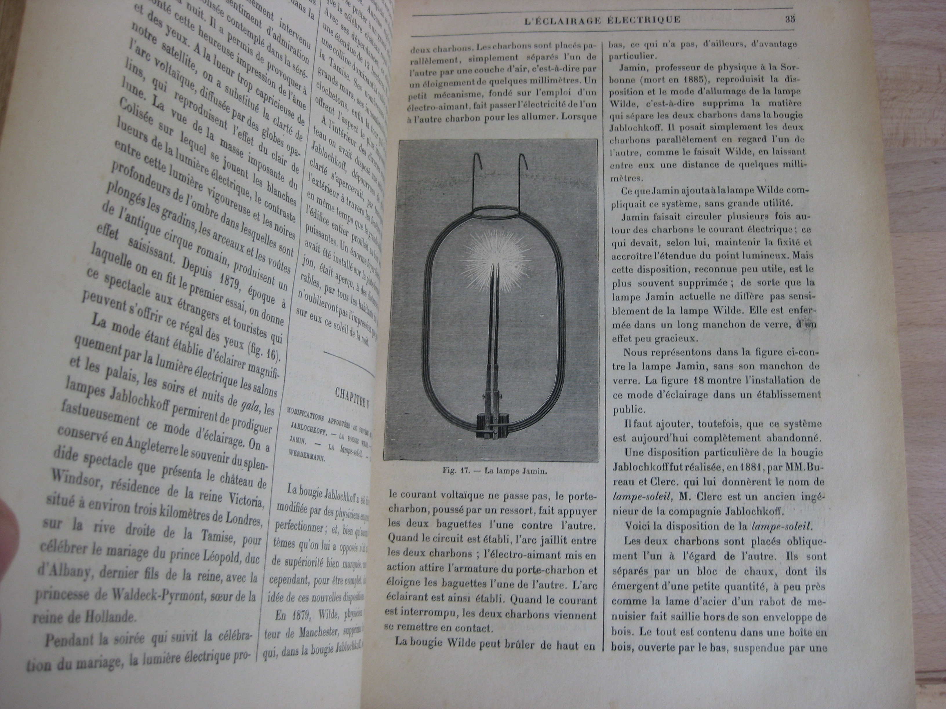 T1, L’électricité, 478 gravures et portraits, comprend : L’ECLAIRAGE ELECTRIQUE – LE TELEPHONE ET LE MICROPHONE – ‘ELECTRICITE FORCE MOTRICE – LES VOIES FERREES DANS LES DEUX MONDES – LES VOIES FERREES EN AMERIQUE – LES VOIES FERREES EN AFRIQUE – LES VOIES FERREES EN ASIE – LES VOIES FERREES EN AUSTRALIE – LES TRAMWAYS.