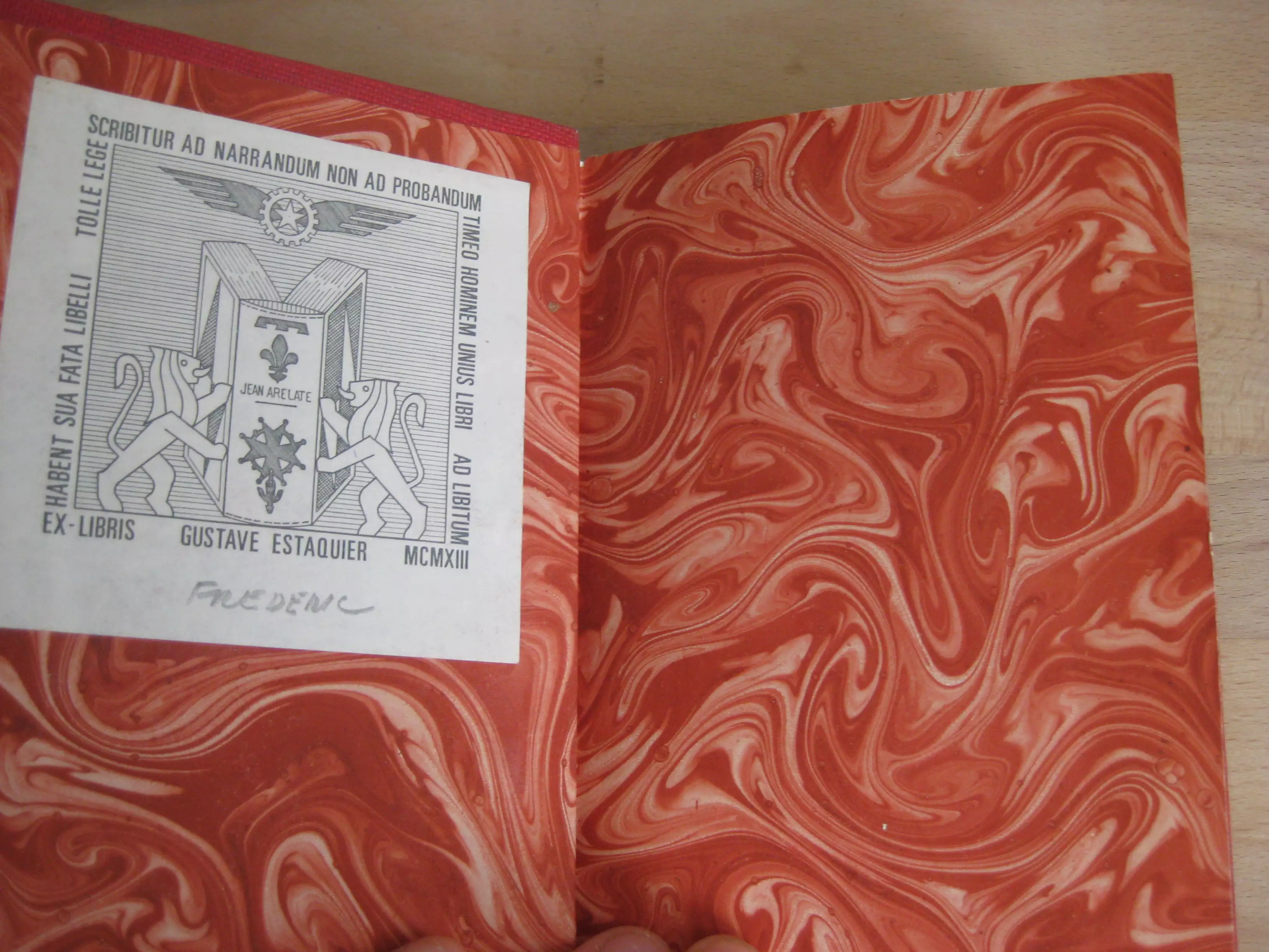 Suivi de Ma route de Bourgogne, 173p. avec tble. 1948. Un des 3000 exemplaires numérotés. 4 ills à pleine page de Pierre Dehay. Très bon exemplaire, propre, intègre, bien ferme. Exemplaire enrichi également d’un bel ex-libirs aux armes en contreplat supérieur.