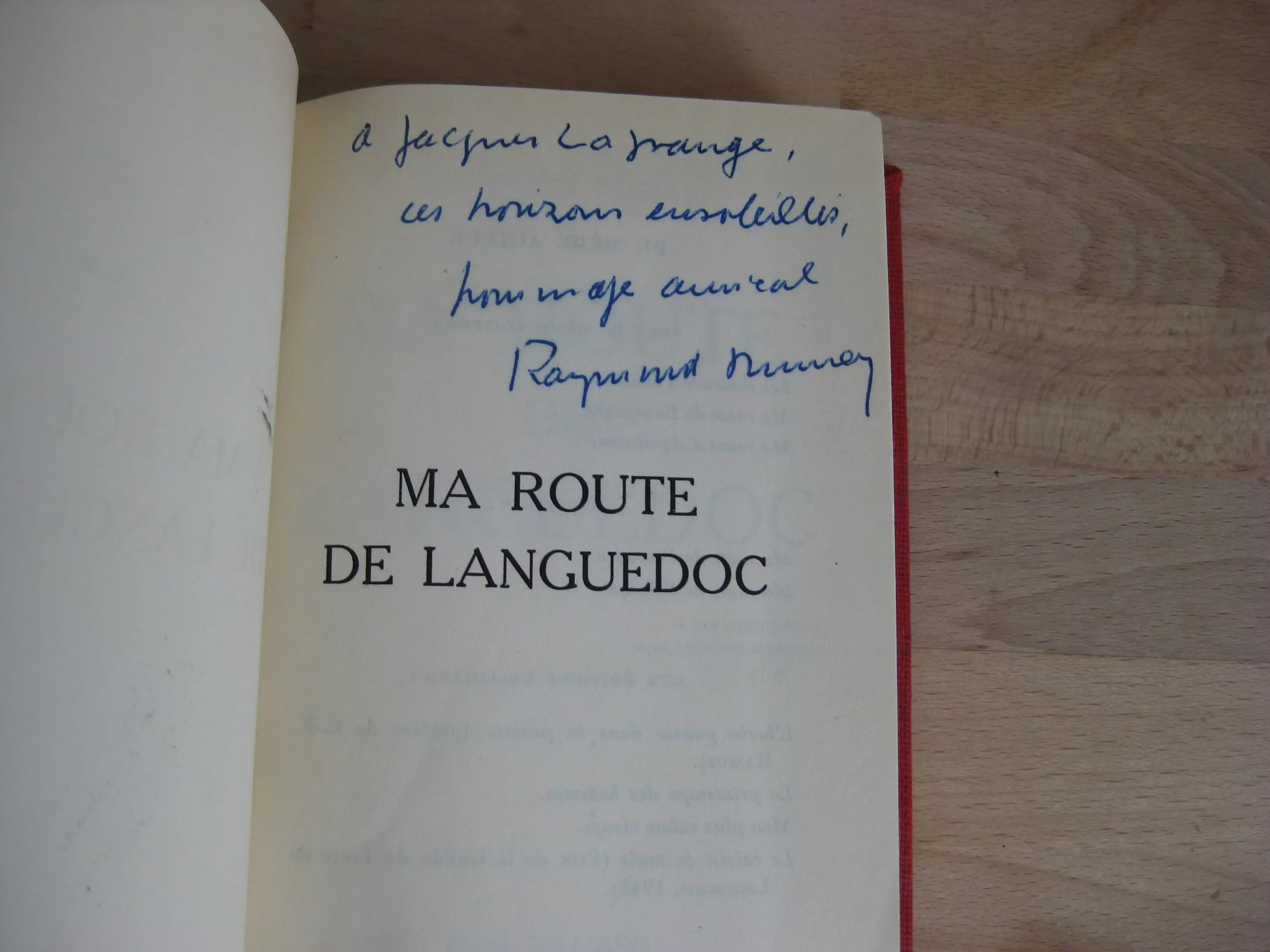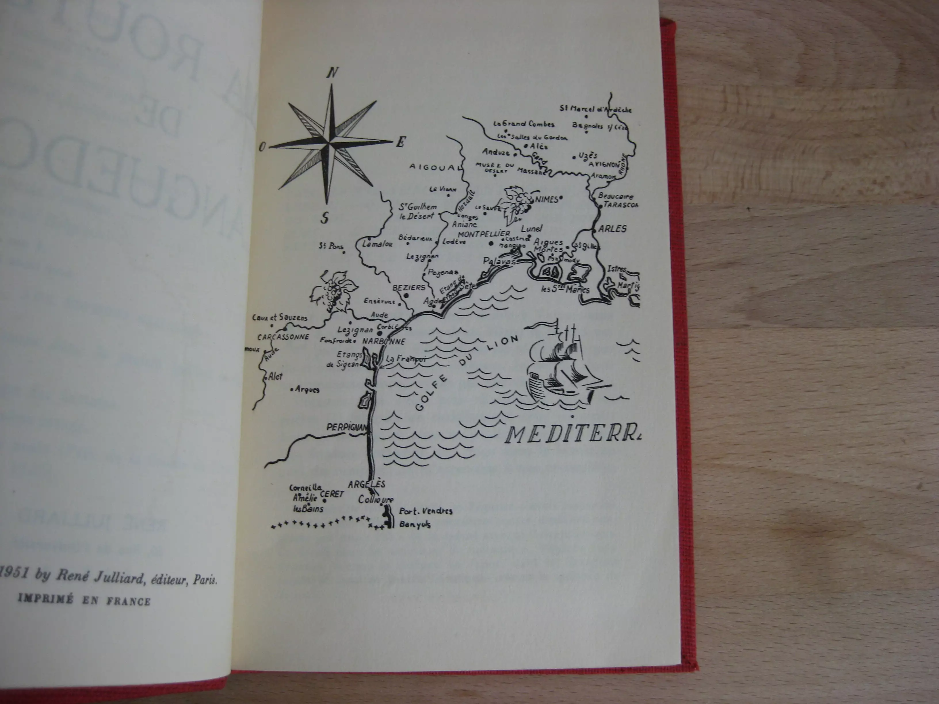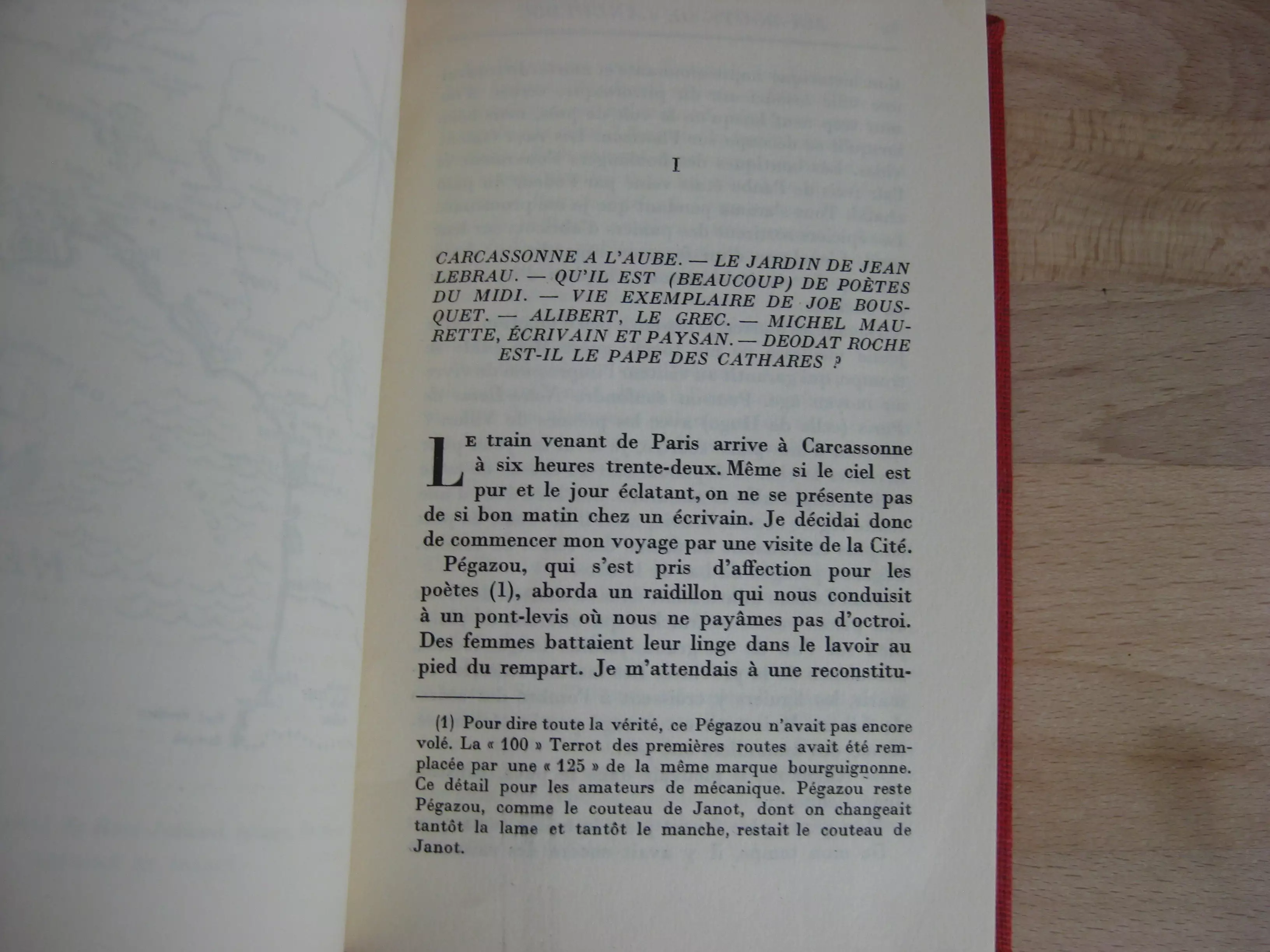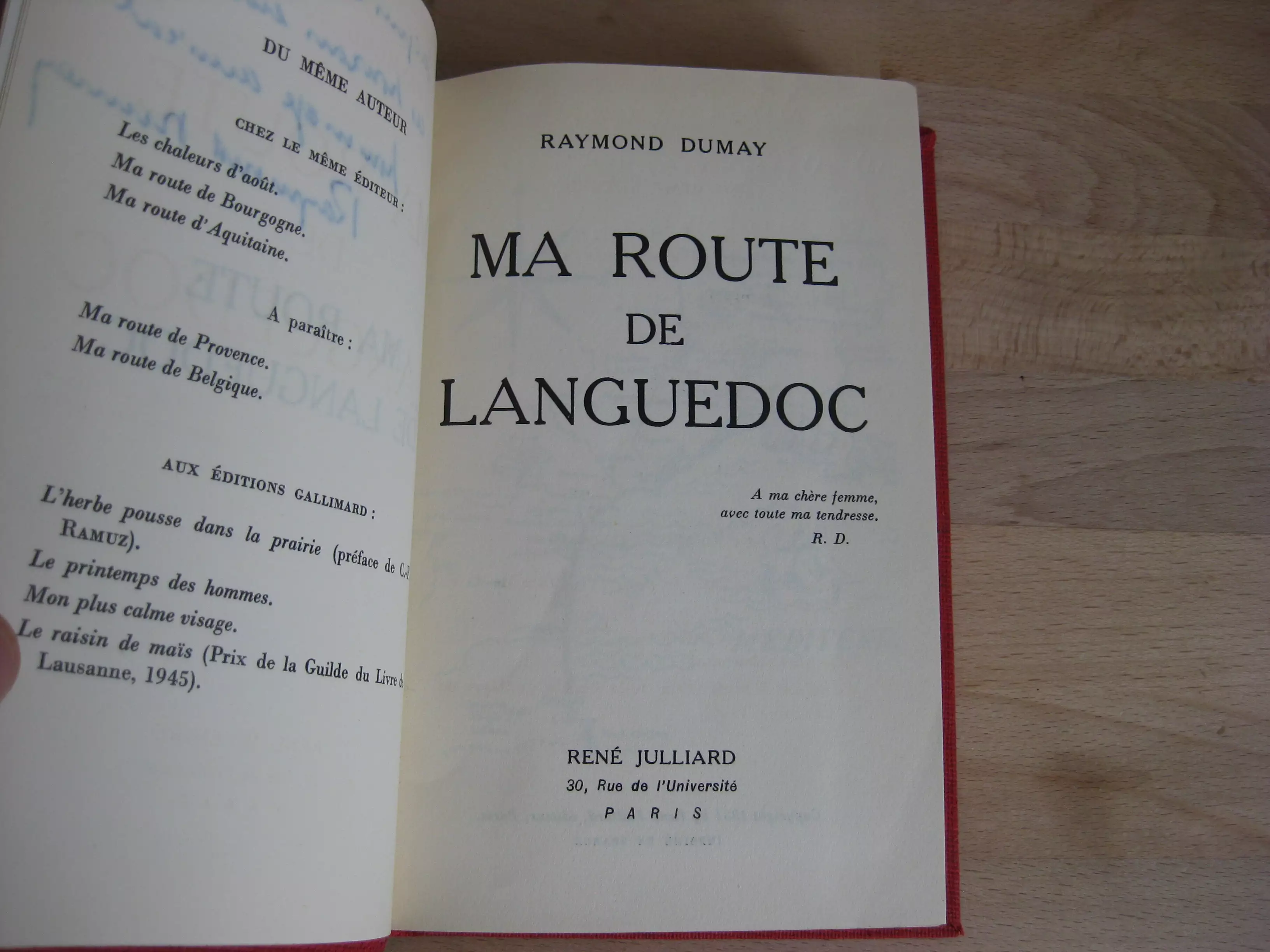 Pleine toile rouge, à dos long orné d’une pièce de titre noire, tranches jaspées, 185 x 124. Ma route de Languedoc, 200p. avec tble. 1951. Édition originale enrichie d’un envoi signé de l’auteur en page de faux-titre. 4 ill. pleine page dont une carte.