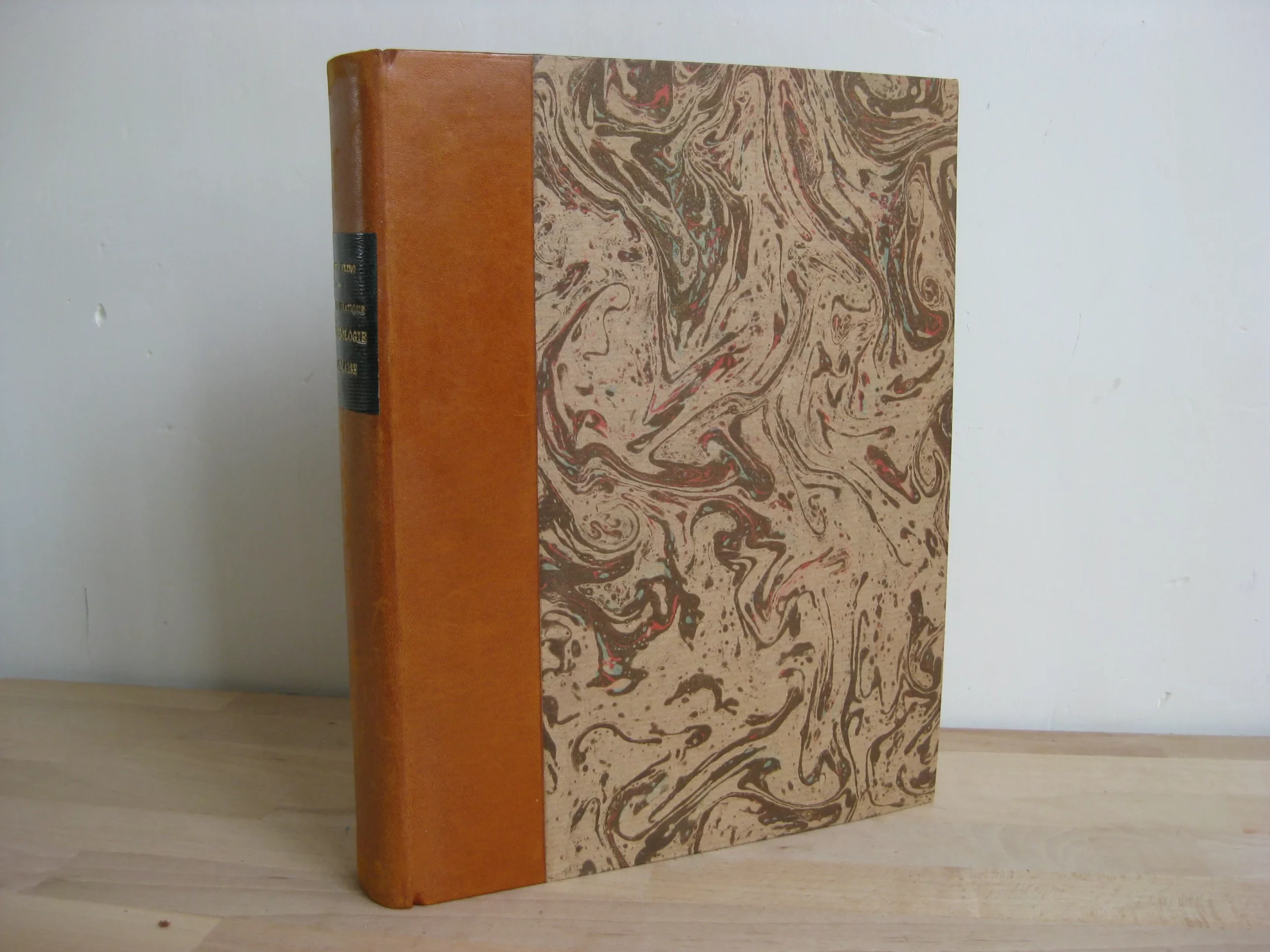 Demie-basane havane à dos long orné d’un pièce de titre en maroquin olive, reliure signée Lucie Weil (galeriste des années 30), 285 x 210, 372p. Avec table. 1930. Illustré de 700 gravures et de 18 hors-texte en héliogravures. Intérieur impeccable. Reliure en très bon état, avec quelques frottements et très légères griffures.