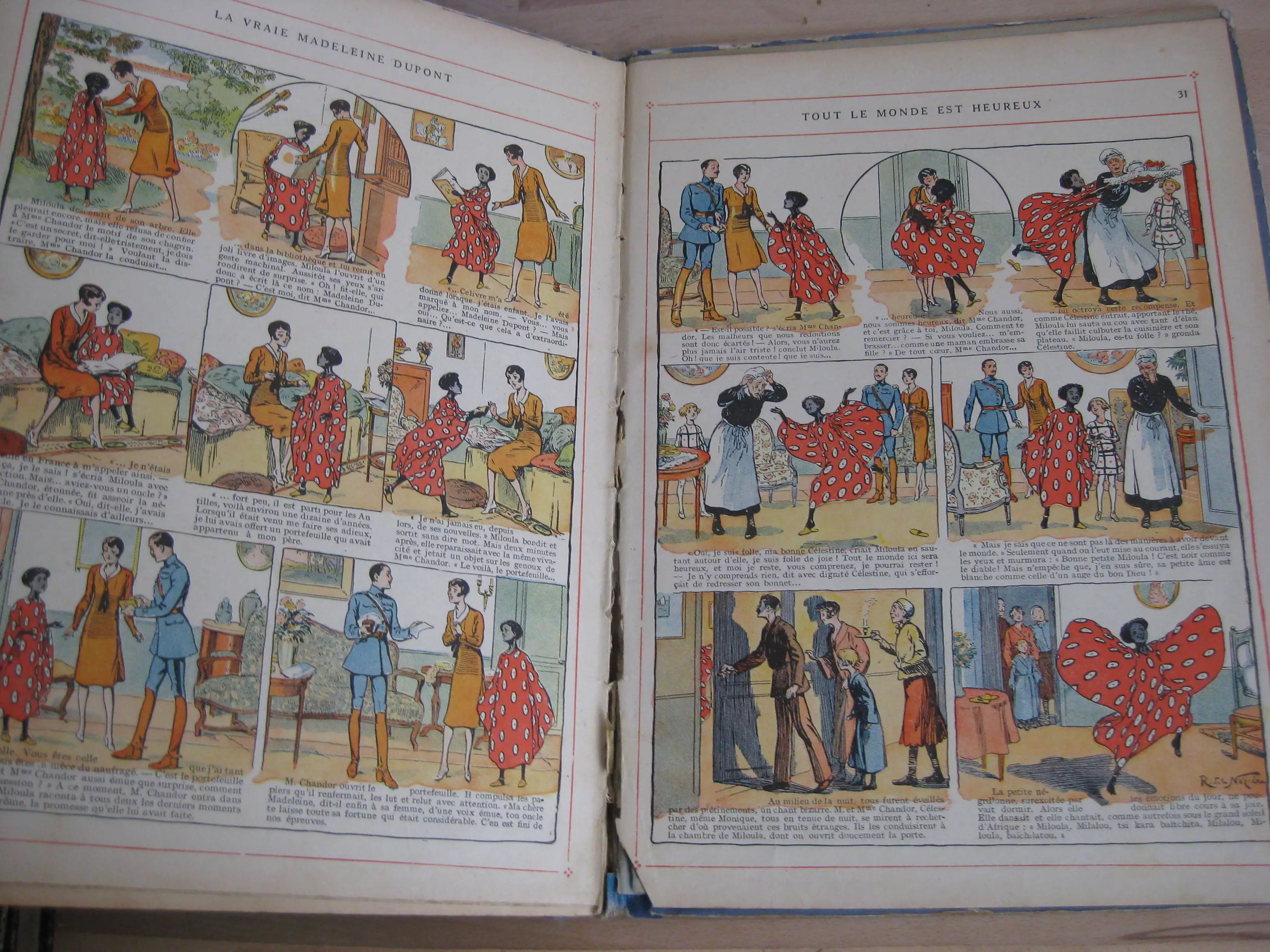 Cartonnage à dos toilé, plat supérieur illustré par Raymond de la Nézière, 313 x 228, 31p. Hors tble. 1929. Intérieur propre. Pages 27 à fin fragilisée en pied. Charnière supérieur ouverte. Plats frottés, mais propres. Exemplaire bien ferme, recouvert avec soin.