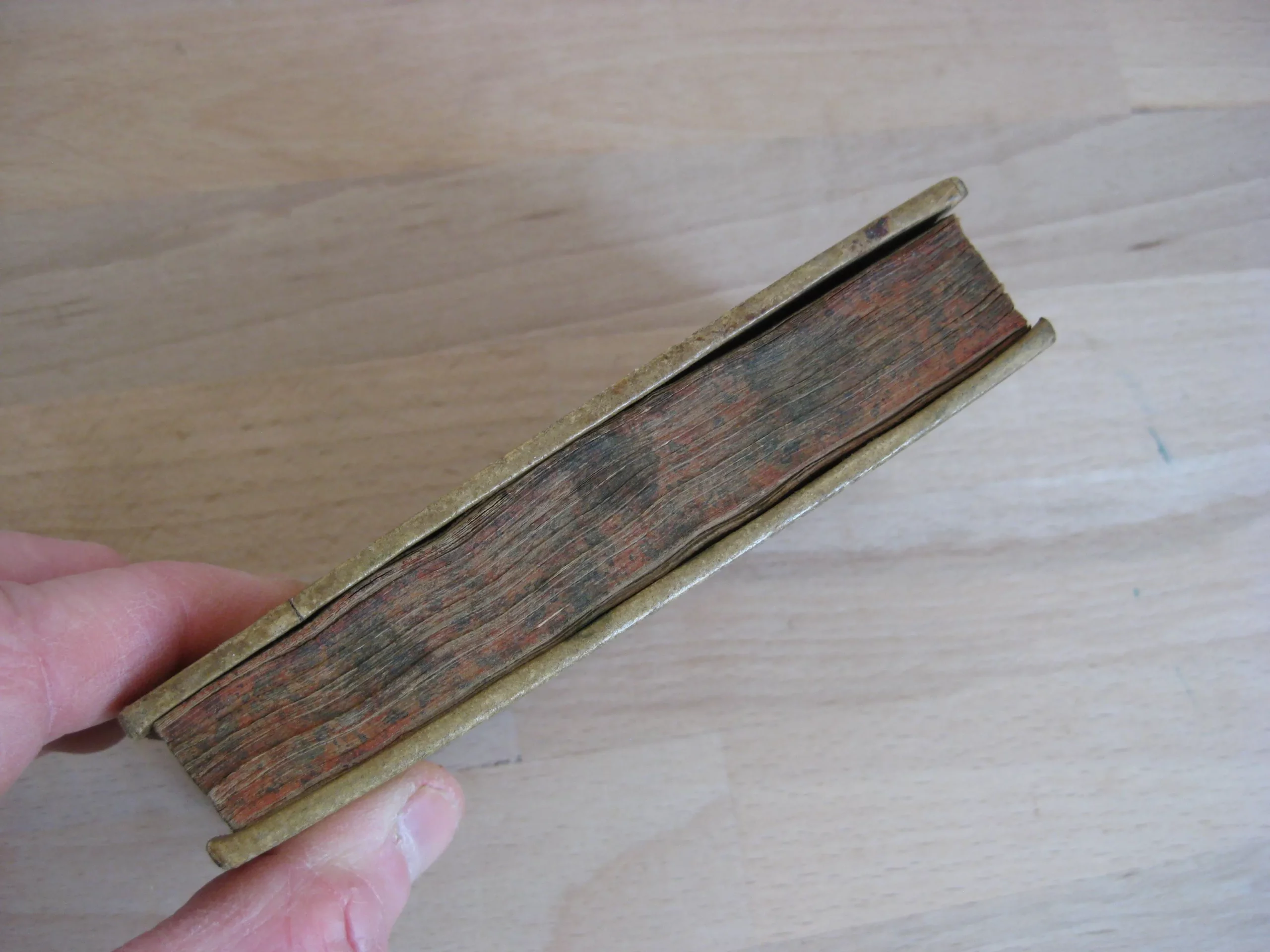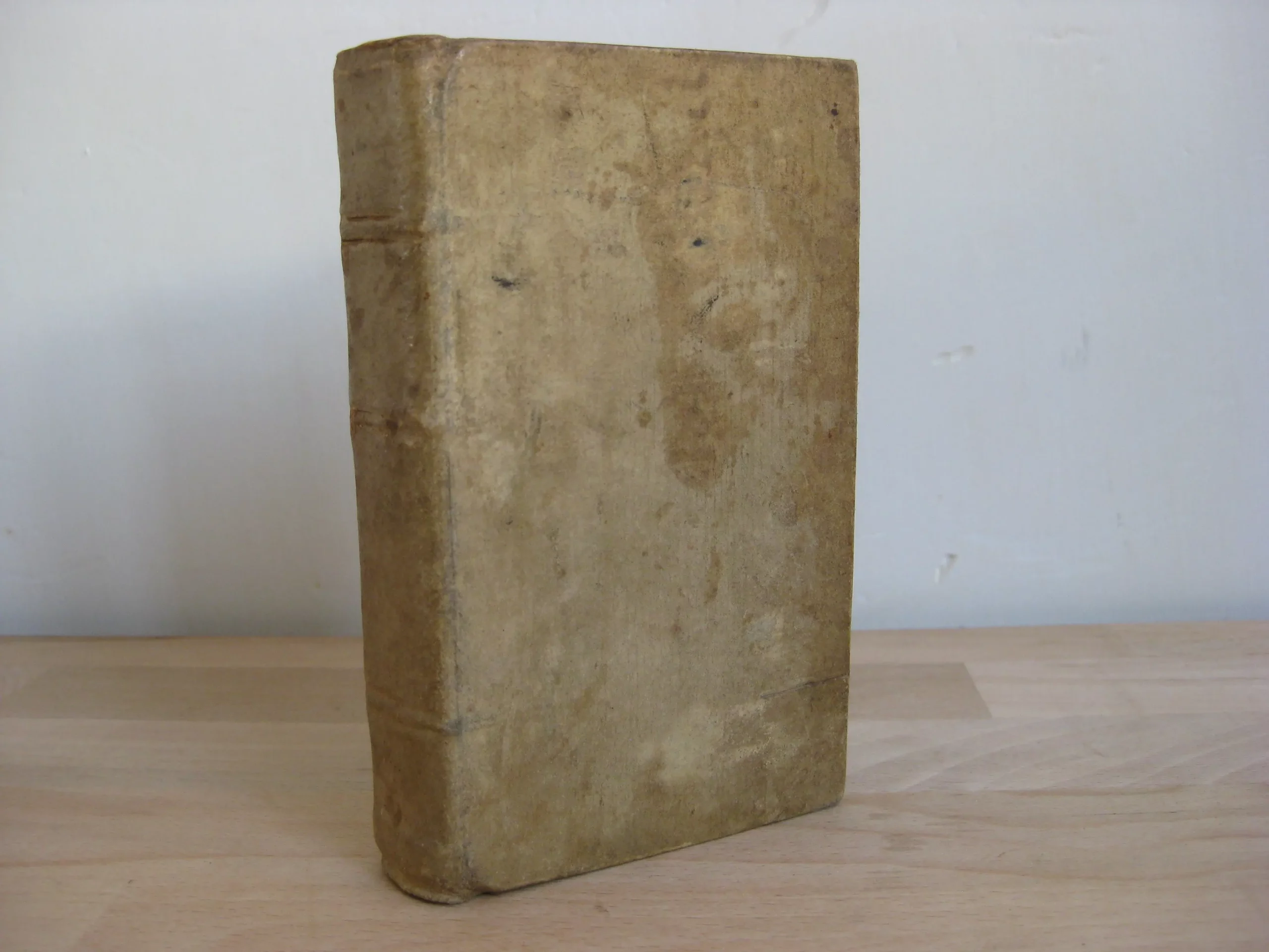Plein vélin d’époque, dos à nerfs très fins, muet, tranches marbrées, signet, 125 x 76, 1778. Dernière édition. Entêtes, culs-de-lampe. 2 tomes reliés à la suite. T1, 120p. (table manquante). T2, 149p. Avec table. Un ex-libris en titre du T1, et un tampon/cachet avec une inscription manuscrite en pied de p.13. Intérieur insolé avec rousseurs d’intensité variable et en marge principalement. Plats insolés et frottés avec taches légères en plat supérieur et d’encre marquée en plat inférieur ; dos frotté avec quelques rousseurs. Champs et coins légèrement frottés, mais propres e intègres. Bel exemplaire, bien ferme.