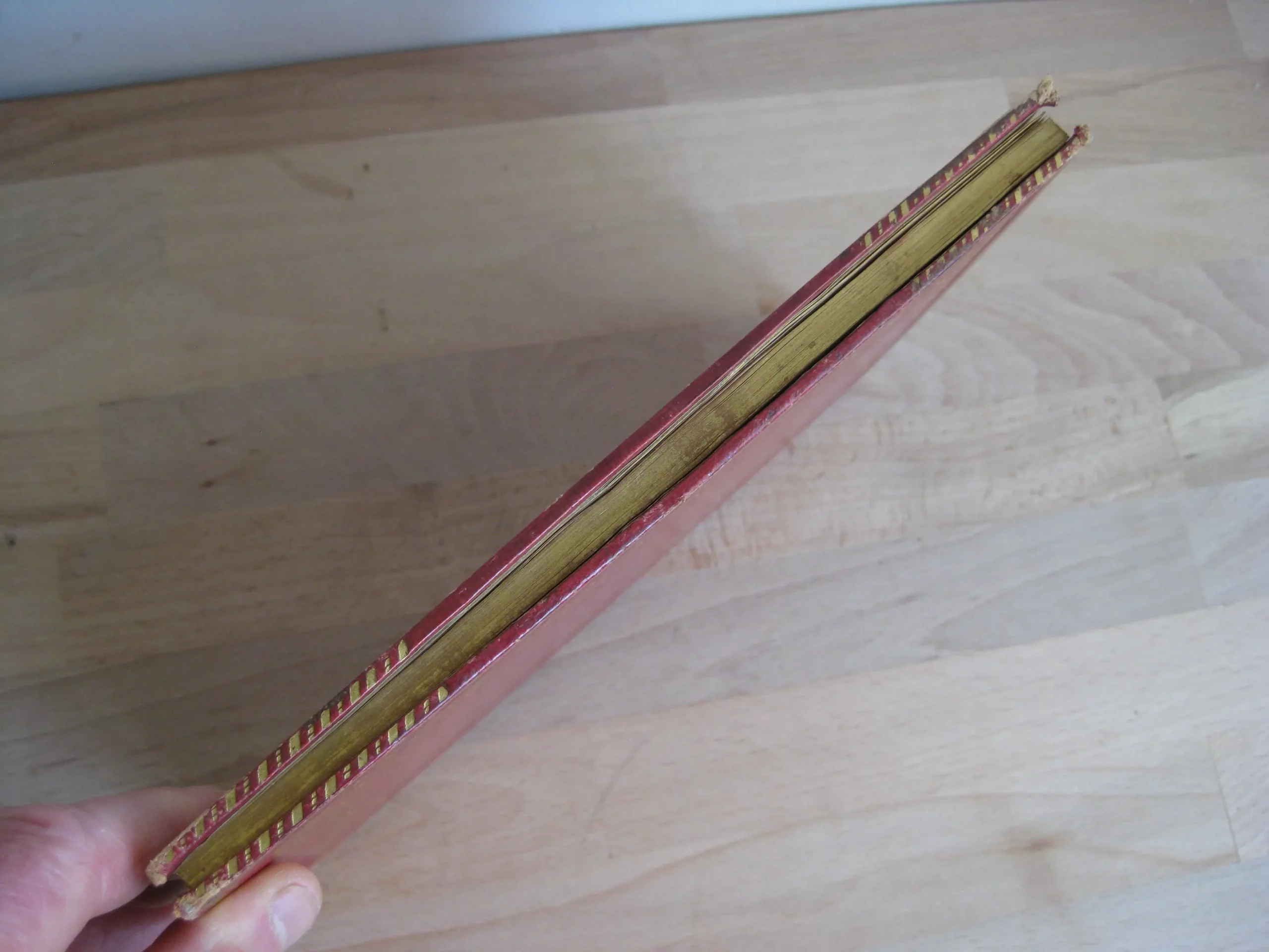 Typographia, rua da rica de duarte bello n°55, Lisboa – Plein chagrin rouge richement décoré, à dos long muet orné de fleurons tout du long et de liserés doubles, plats ornés à l’identique avec un encadrement à liserés épais et pleins, autour d’un cadre chagrin estampé d’une guirlande, encadrant un chagrin à long grain bordé d’une guirlande large à arabesques florales, champs des coins ornés, toutes tranches dorées, 221 x 148, 112p. Hors errata. 1852. Orné d’un frontispice sous serpente légendé : « M.C. A. A. H. :! ». Intérieur légèrement insolé mais propre et intègre. Contreplats et gardes avec traces et légères rousseurs. Coins frottés, légèrement émoussés. Champs frottés avec épidermures. Plats frottés avec quelques griffes légères. Dos frotté avec fortes épidermures en coiffe et queue. Bien ferme.