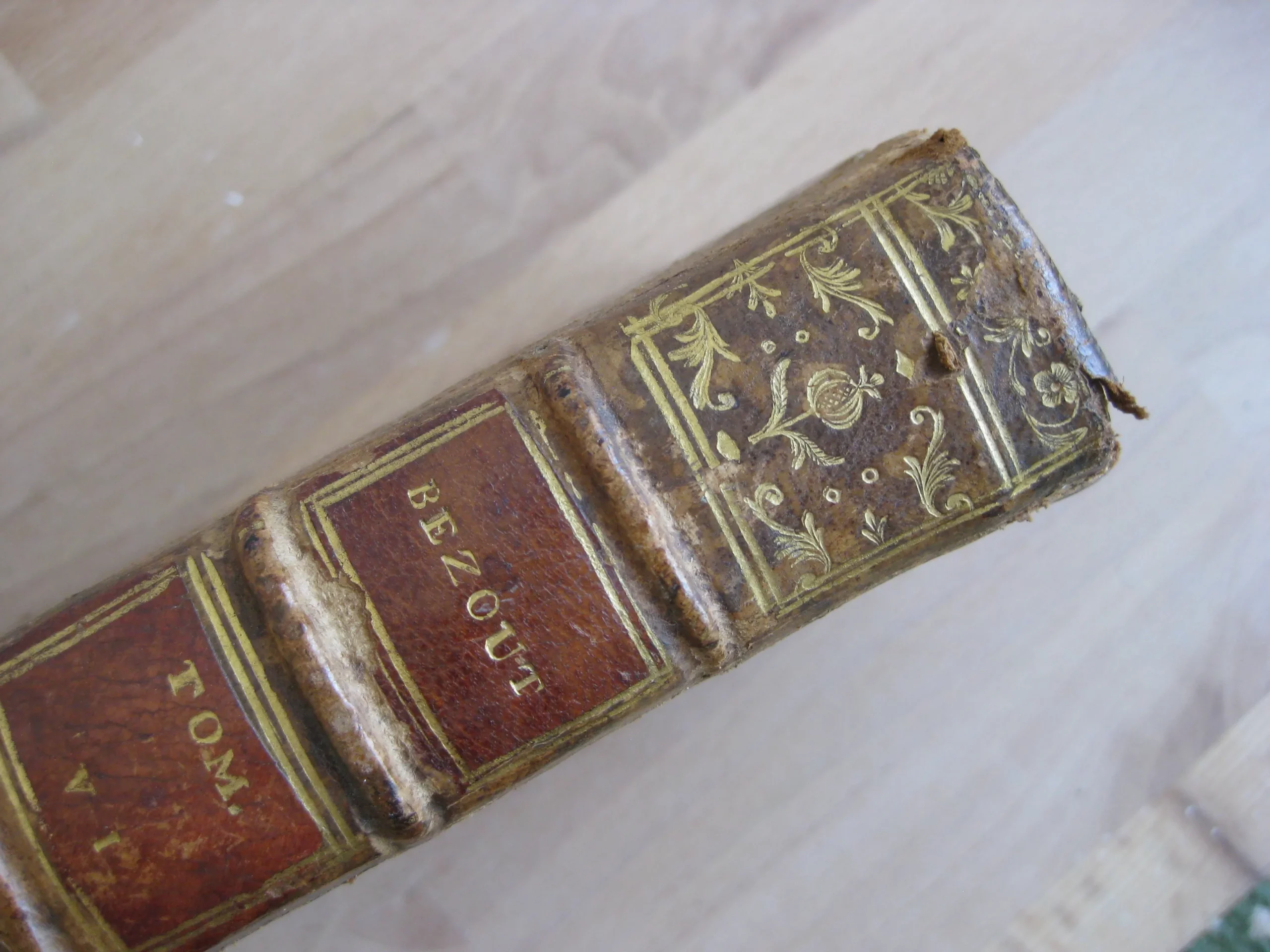 Plein veau marbré, dos à cinq nerfs orné d’une pièce de titre lire de vin, et de la tomaison (VI), caissons fleuronnés, tranches marbrées, 203 x 130, 1775. 313p. Suivies des 10 planches dépliantes. Et In fine, Tables à l’usage de la navigation / Tables de logarithmes pour les sinus et tangentes & pour les nombres naturels. Précédé de Préface et table des matières, paginés iv – xij. Intérieur propre. Planches toutes quasi intègres sauf la planche n°1 (déchirure sans manque le long du pli) , planche VII (un accroc en plein sans manque et un manque en marge) ; VIII (un petit manque en marge). Reliure avec épidermures marquées en plats, champs et coins ; coins émoussés ; 2 trous de vers en mors supérieur ; épidermure au dernier caisson ; coiffe avec une petite déchirure ; queue très épidermée ; pied des deux mors ouvert. Exemplaire bien ferme. Également en stock : Cours de Mathématiques à l’usage de la Marine et de l’Artillerie, seconde partie. Par Bezout. Suivi de Notes sur la géométrie, par A.-A.-L. Reynaud. 1828