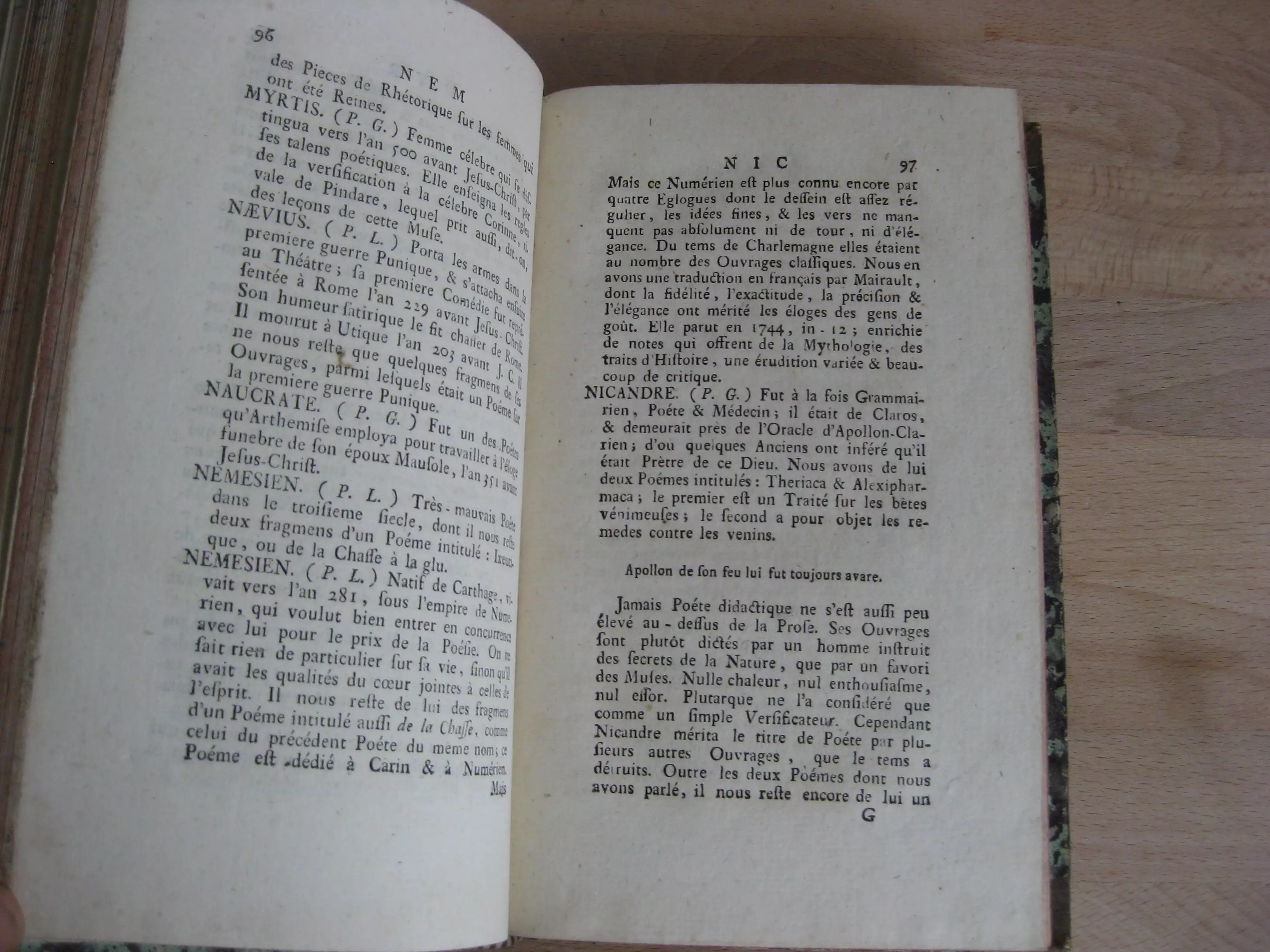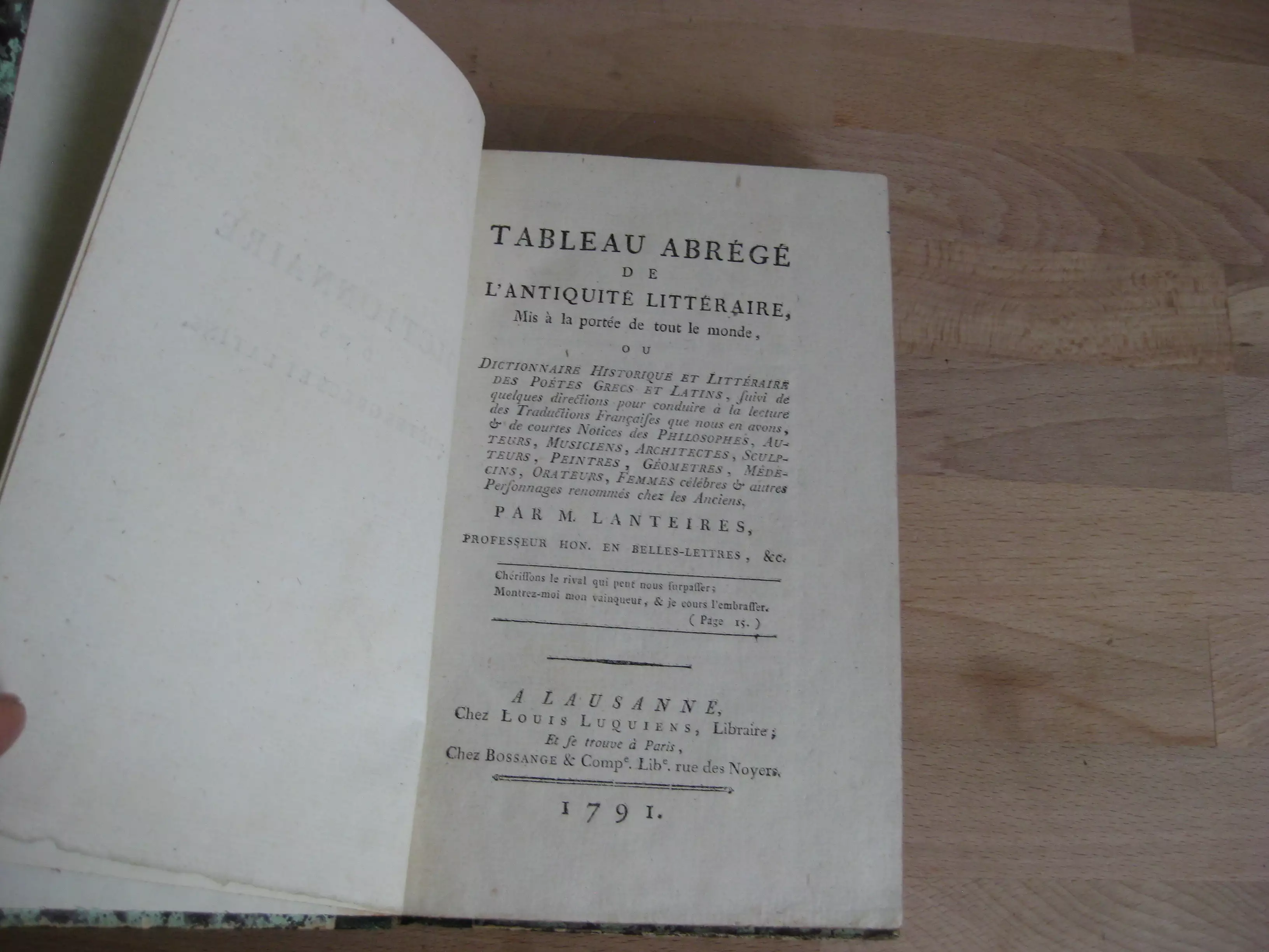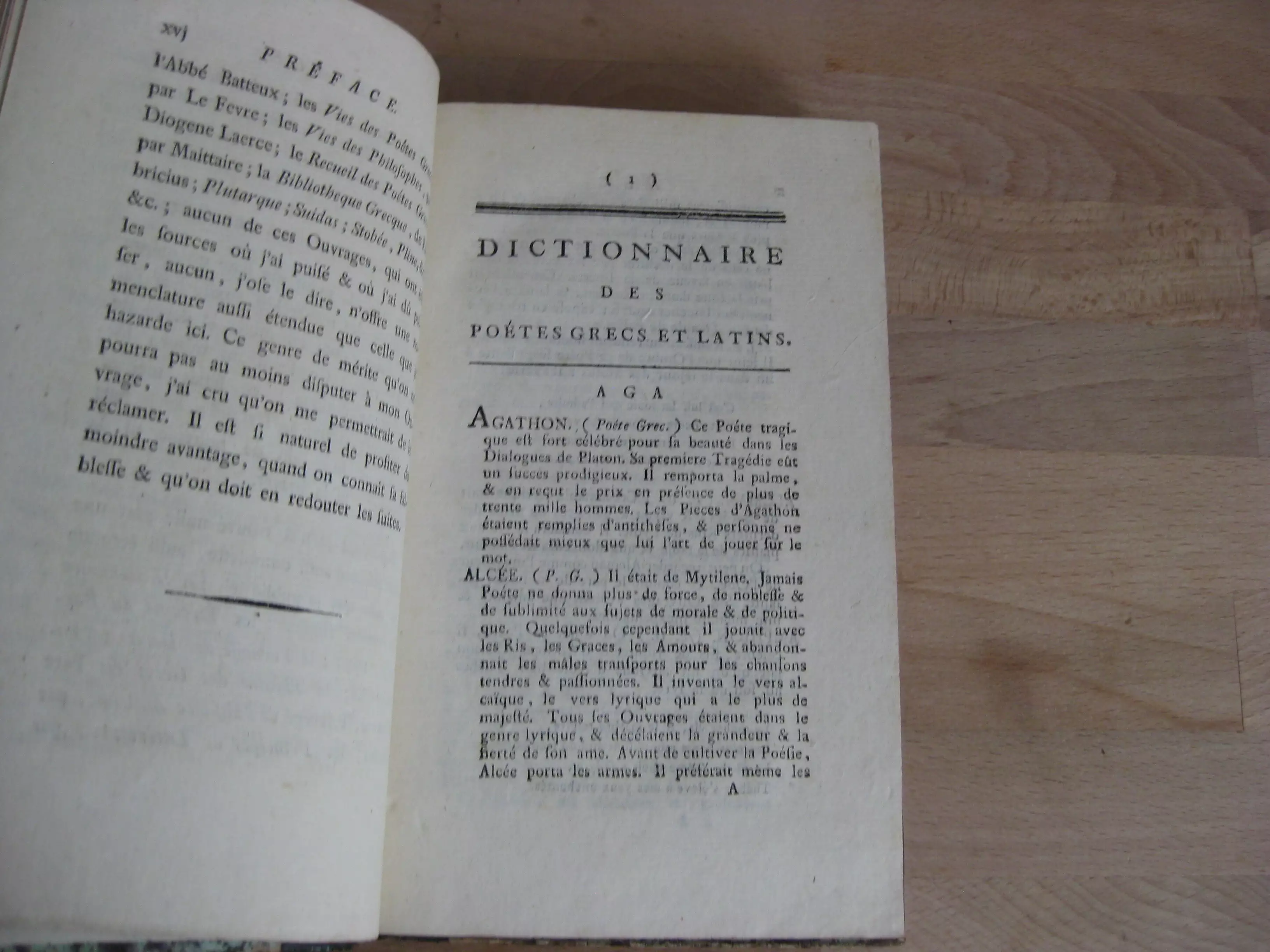 Tableau abrégé de l’antiquité littéraire, mis à la portée de tout le monde. Ou dictionnaire historique et littéraire des poétes grecs et latins, suivi de quelques directions pour conduire a la lecture des traductions françaises que nous en avons, & de courtes notices des philosophes auteurs, musiciens, architectes, sculpteurs, peintres, géometres, médecins, orateurs, femmes célébres & autres personnages renommés chez les anciens –