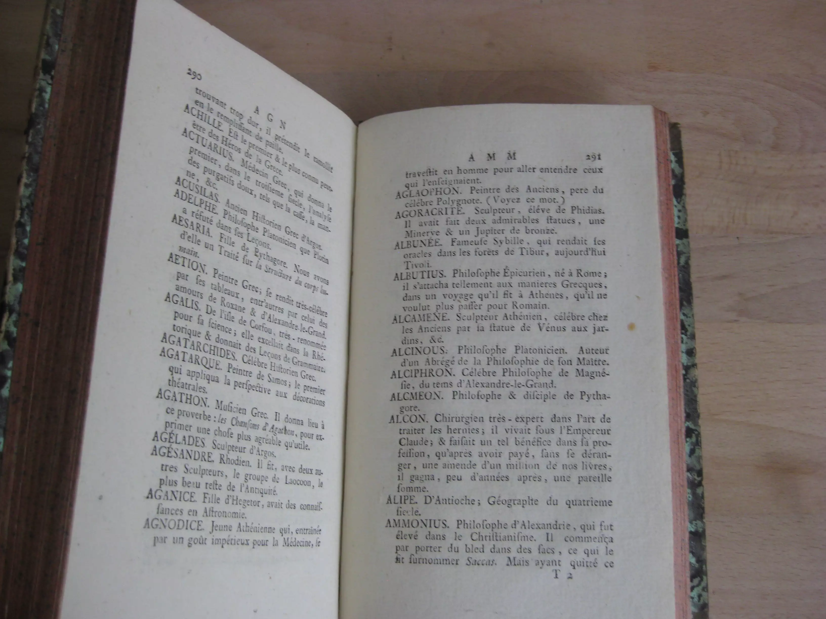 Demi-veau olive à dos long orné du titre et de l’auteur, tranches rouges jaspées, 208 x 130, 359p. 1791. Reliure très frottée mais solide, avec nombreuses épidermures. Intérieur très bon, propre.