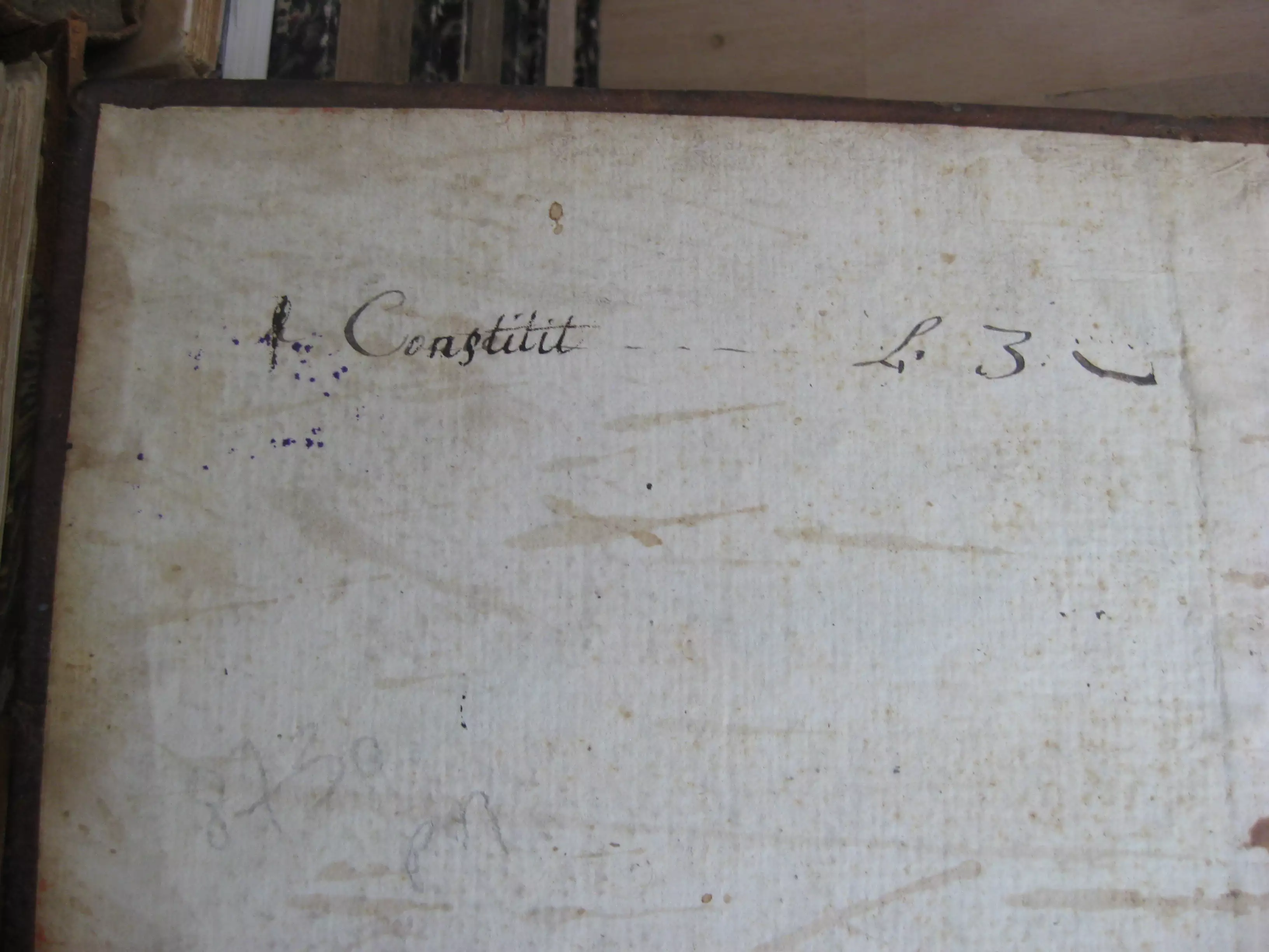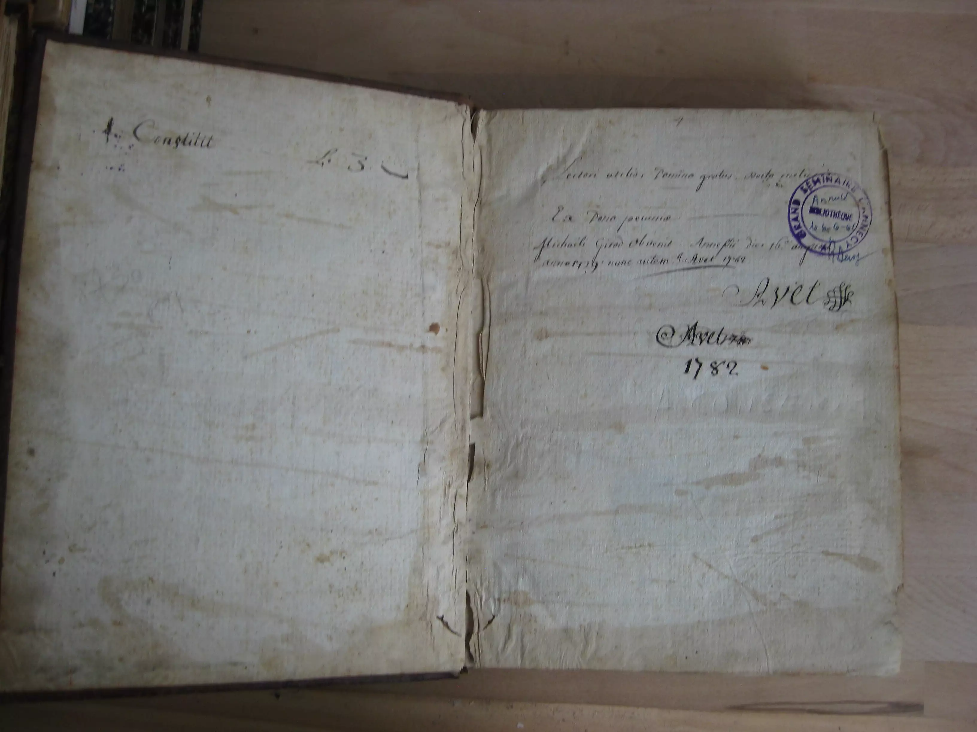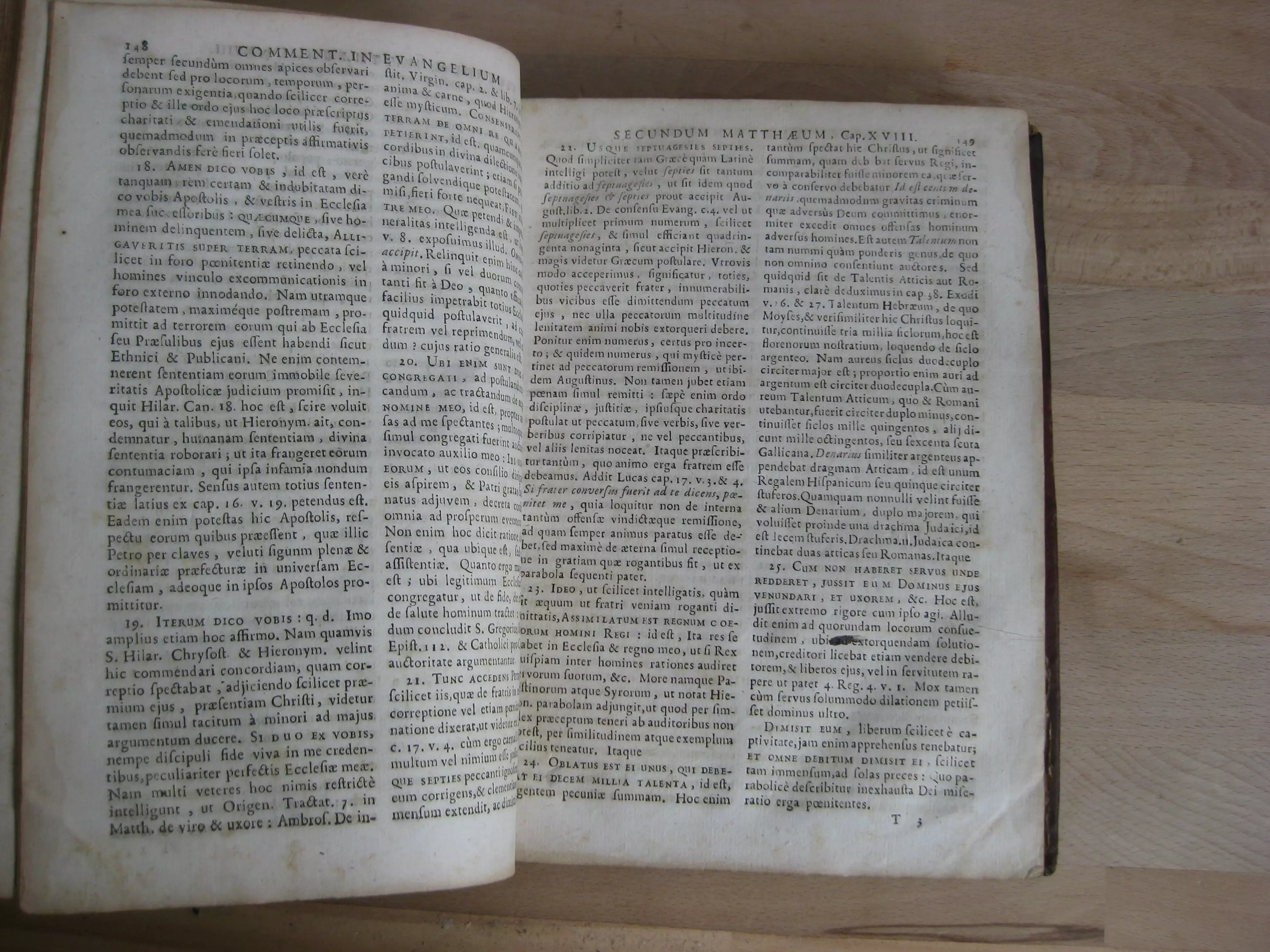 Exemplaire enrichi en garde d’un ex-dono latin manuscrit, de l’ex-libris manuscrit du donataire, et un cachet du Grand Séminaire d’Annecy, répété au titre et en dernière page. Exemplaire également enrichi au recto et verso de cette dernière page de deux textes manuscrits en français : au recto, « Réduction de la monnoye ancienne à celle de nos païs », (18 lignes abordant le denier d’argent, demi-denier, drachme, denier d’or, sicle hébraïque, etc. ; au verso : au verso « Remarques [sur la ] vie des pharisiens extérieure » (9 lignes).